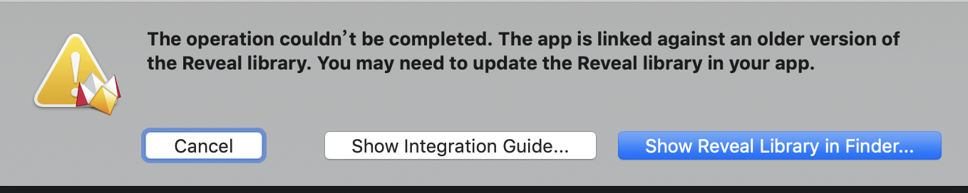 - Mac上打开Reveal点击要调试的App,会出现如图错误: