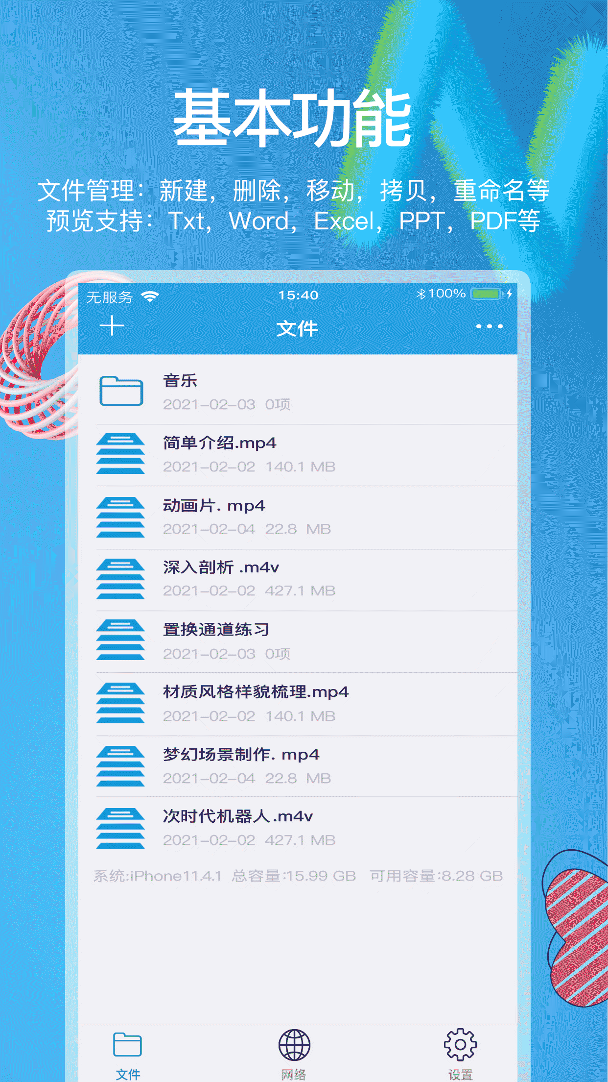 多种传输:Wifi传输,iTunes传输,相册导入,浏览导入