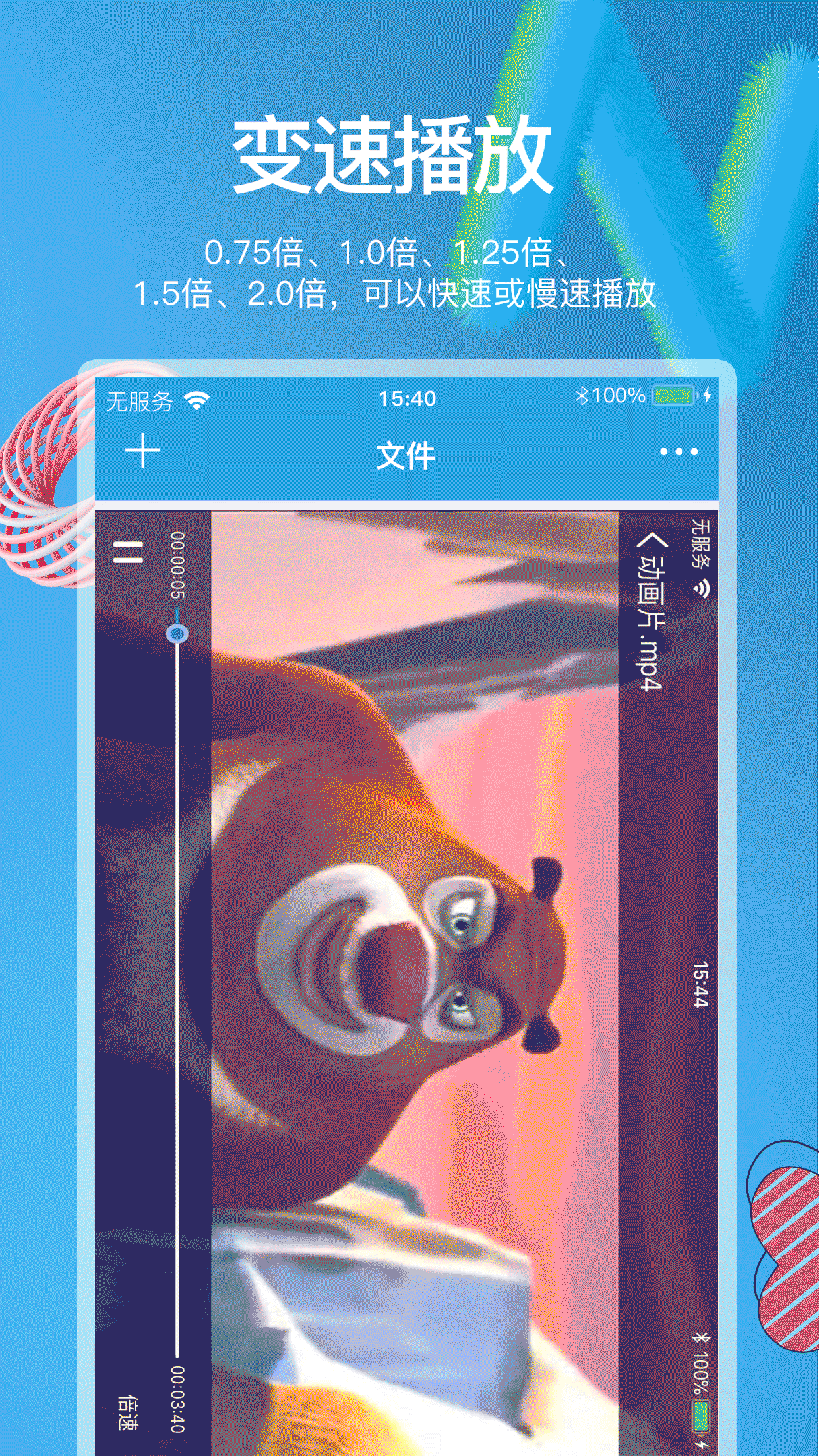 变速播放:0.75倍、1.0倍、1.25倍、1.5倍、2.0倍,可以快速或慢速播放